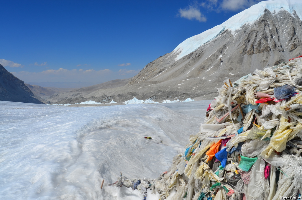 This is the Tibetian side of the Nangpa La, looking north. Cho Oyo base camp is occluded by the chorten at right.